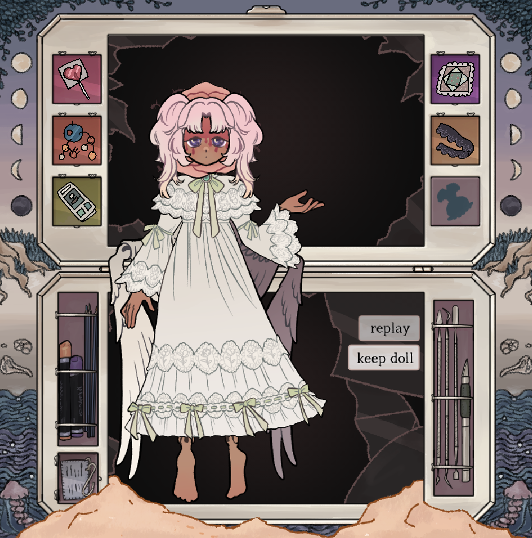It was such a tender experience to build the doll while the room came together. Every element of this game was so intricate and shiny and elegant without being superfluous... Really looking forward to anything this team cooks up next. Go make some dolls!!